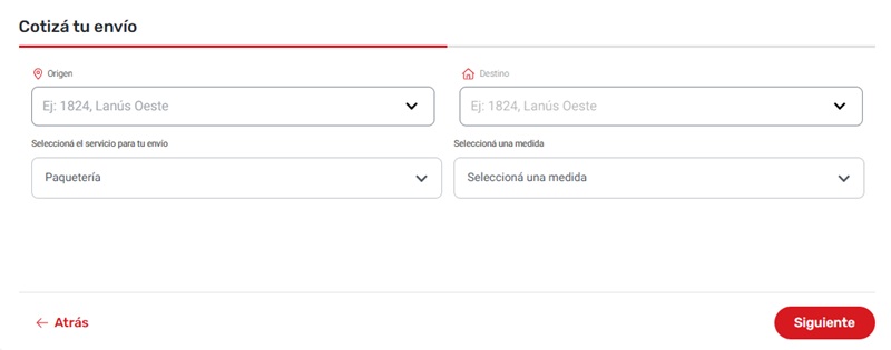 Ingresa los datos solicitados, presiona el botón «Siguiente» y obtendrás un valor aproximado a lo que terminarás pagando por tu envío a DOMICILIO o a SUCURSAL