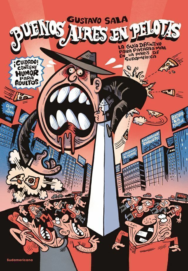 Sabía usted que la Gran Capital del Sud, la Reina del Plata, exhibe, erecto en el cruce de dos de sus principales avenidas, uno de los monumentos más fálicos del mundo? ¿Y que ostenta una distinción a «bares notables», que habilita a sus dueños a cobrarnos una fortuna por un cortadito medio quemado? ¿Y sabía acaso que sus calles se han vuelto intransitables, están llenas de basura y atestadas de gente iracunda, taxistas fachos y colectiveros desatados? Sí, por supuesto que sí, todo el mundo lo sabe. Así que seguramente tampoco desconocía que hace rato este centro mundial del tango ni siquiera está convencido de haber sido la cuna de su máxima estrella porque, en una de esas, Gardel eligió nacer en París. Y si ya sabía todo esto, ¿me puede decir por qué sostiene este libro entre sus manos y no lo puede soltar? Claaaro, el porteño es así: le gusta pasarla mal, y después le gusta quejarse. Detesta la mugre, el ruido, lo caro que es malvivir acá, pero se queda. A Gustavo Sala también le gusta vivir acá y quejarse, por eso pone a Buenos Aires en pelotas -guiño al maestro Calé y sus viñetas de la porteñidad en camiseta-, y lo registra todo, glorias y miserias, con su trazo salvaje, sin censura, a la vez que aventura otras ciudades posibles dentro de ella, otras historias. Así que vamos, que ya decidió gastar plata: métase de cabeza en esta guía y anímese a perderse por sus callecitas adoquinadas con olor a riachuelo. Bienvenidos a Buenos Aires. El porteño. Los barrios. Algunas calles. La gente cariñosa. La ciudad que nunca duerme. La evolución del habla. La discusión permanente. El Obelisco. El más fálico: corte transversal. Los diseños descartados. La venta ambulante. Evolución. Algunos nombres. Cómo le dicen en el mundo. El porteño viajero. Cachito, el porteño al que se le pegan fácil los acentos. En la calle. Las cosas que la gente se pierde por mirar el celular, algunas cosas gratis para hacer en Buenos Aires, kioscos de diarios y revistas. Plagas. Nuestra fauna: pal