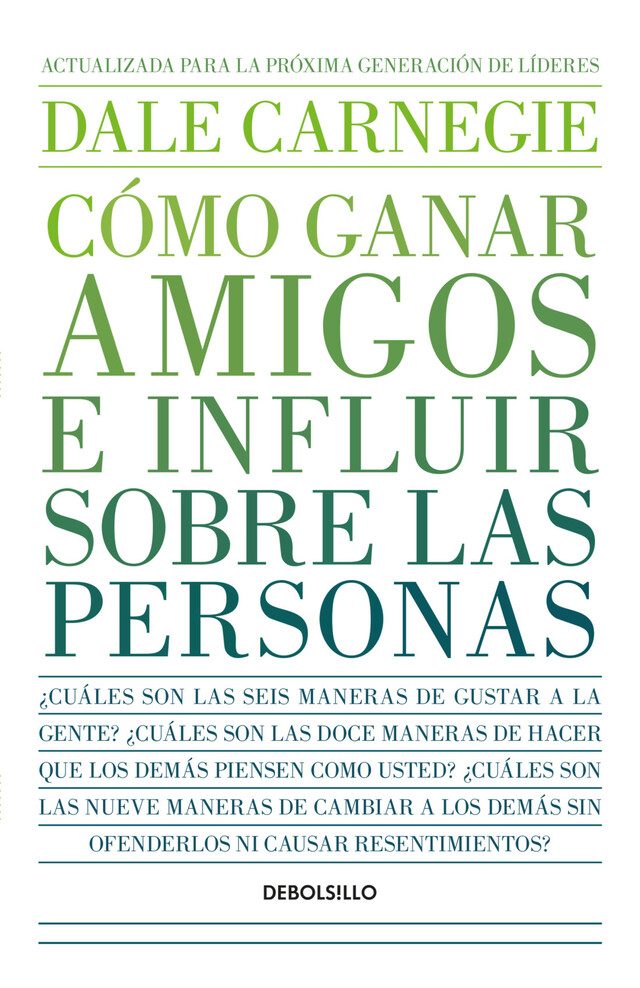 El libro que posicionó al método Carnegie como líder del mercado del marketing y las relaciones públicas. Uno de los primeros best sellers de autoayuda, fue publicado por primera vez en 1936 y lleva vendidas 15 millones de copias a nivel mundial. Dale Carnegie escribió este libro con el propósito de ser un suplemento a su curso sobre oratoria y relaciones humanas y nunca se imaginó que se convertiría en un éxito de ventas y que la gente lo leería, lo criticaría y viviría según sus reglas. Carnegie entrevistó a muchas personas de renombre para tomar ejemplos de sus vidas. Entre ellas están Edison, Franklin D. Rooselvelt y James Farley. Algunos puntos importantes del contenido son: Primera parte: Técnicas fundamentales para tratar con el prójimo Si quieres recoger miel, no des puntapiés a la colmena. El gran secreto para tratar con la gente. Segunda parte: Seis maneras de agradar a los demás Haga esto y será bienvenido en todas partes. Una manera sencilla de causar una buena impresión. Una manera fácil de convertirse en un buen conversador. Cómo interesar a la gente. Tercera parte: Logre que los demás piensen como usted No es posible ganar una discusión. Un medio seguro de conquistar enemigos. Si se equivoca usted, admítalo. El secreto de Sócrates. Cómo obtener cooperación. Un llamado que gusta a todos. Cuarta parte: Sea un líder Cómo criticar y no ser odiado por ello. Hable primero de sus propios errores. A nadie le gusta recibir órdenes. Permita que la otra persona salve su prestigio. Procure que la otra persona se sienta satisfecha con lo que usted quiere.