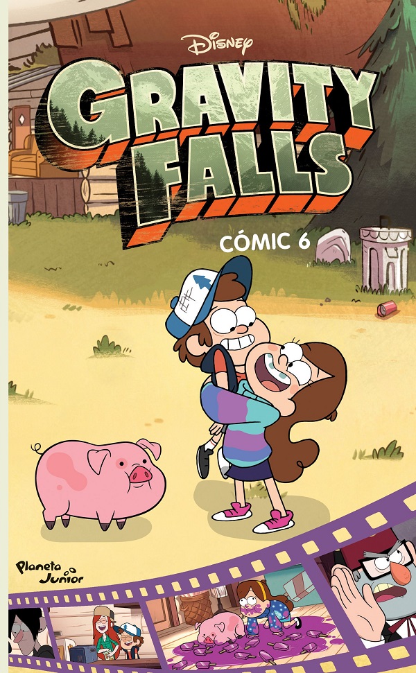 ?Necesitas un portabebés para tu cerdito? ?Crees que tu grupo musical favorito ha sido fabricado en serie por una máquina? Las vacaciones de verano de Dipper y Mabel se vuelven cada vez más extranas en Gravity Falls. Mabel y sus amigas deciden liberar a su banda favorita, al descubrir que sus integrantes son clones enjaulados por el manager. Dipper y Stan investigan el extrano caso de la canción hipnótica de Robbie. Los Pines deben adentrarse a una tierra atrapada en el tiempo para rescatar a Pato de las garras de una criatura prehistórica, tras un descuido del tío Stan. Únete a Dipper y Mabel mientras se aventuran en el mundo misterioso de Gravity Falls. Revive las aventuras de tus gemelos favoritos en Gravity Falls. Cómic 6, una novela gráfica que recuenta capítulos de la serie animada de Disney Channel.