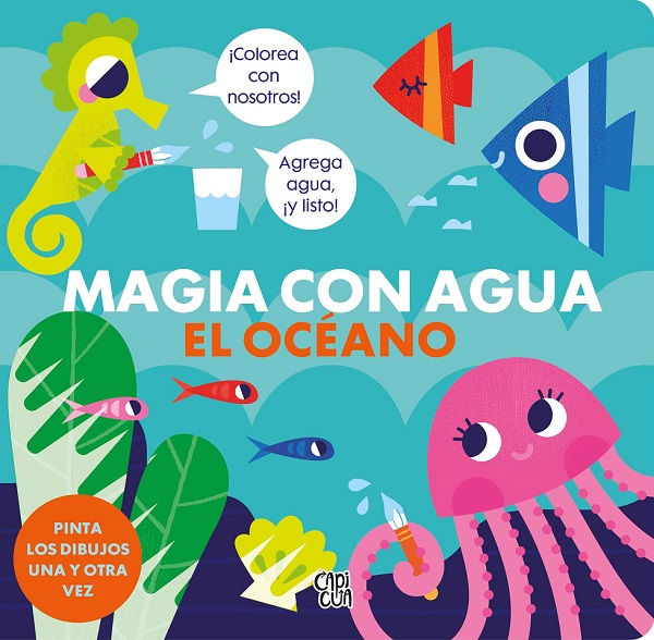 La selva, El océano, Unicornio y Dragones están llenos de sorpresas. Al humedecerlas con el dedo, las zonas blancas en cada uno de los cuatro libros de esta serie se colorean y los animales cobran vida. Cuando se secan, las zonas quedan blancas otra vez y se pueden volver a “colorear” con agua todas las veces que el niño quiera.